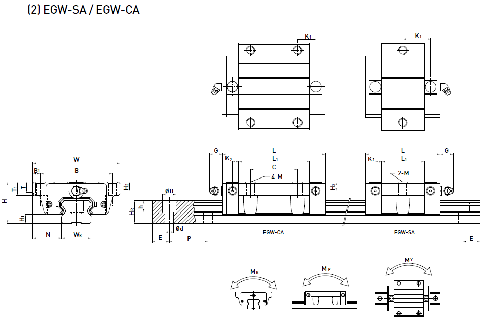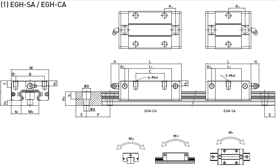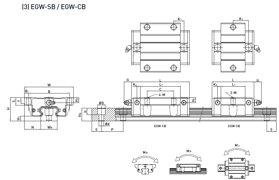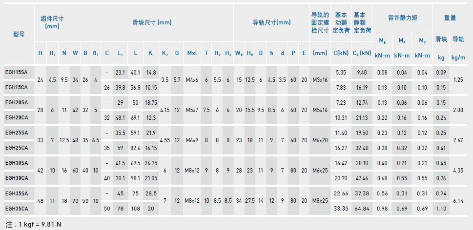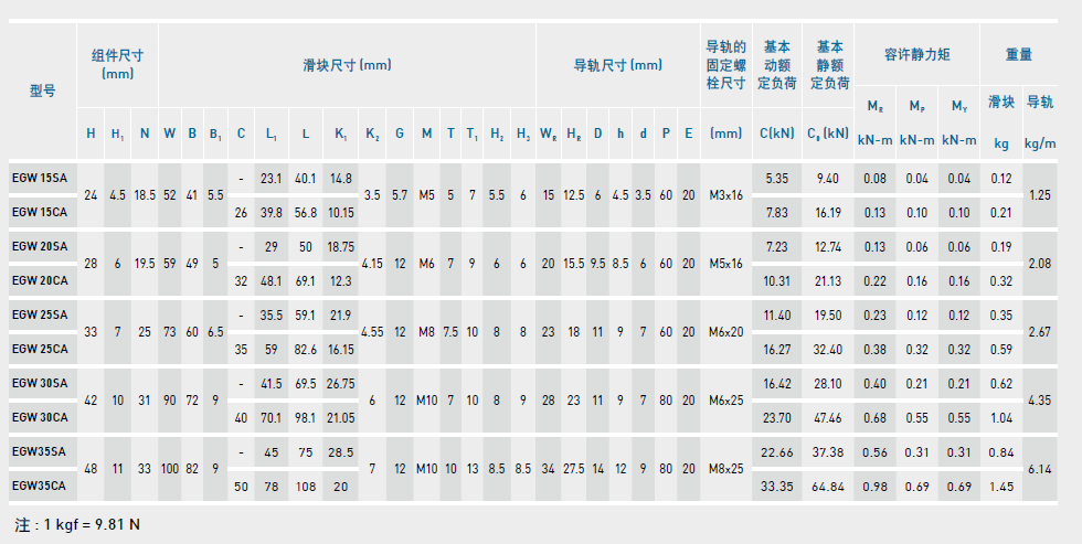 低組裝型滾珠直線導軌EG系列尺寸表