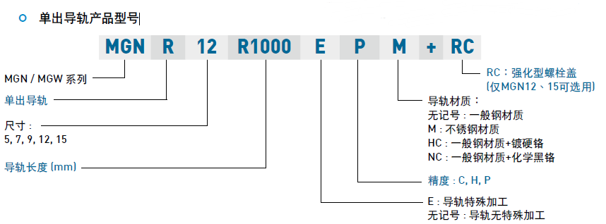 ? 單出導軌產品型號