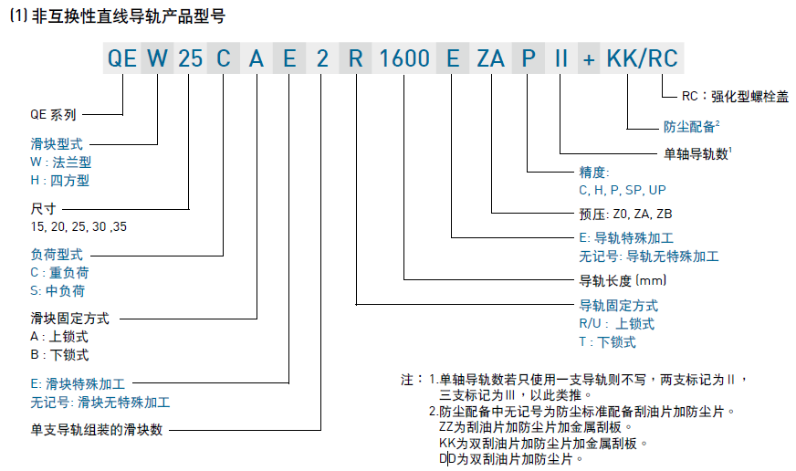 (1) 非互換性直線導軌產(chǎn)品型號