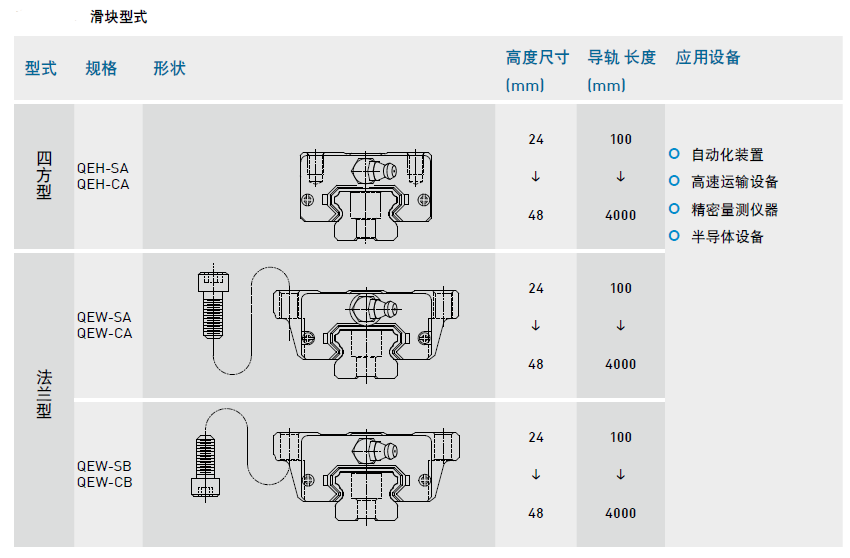 直線導(dǎo)軌QE靜音系列之導(dǎo)軌和滑塊型式