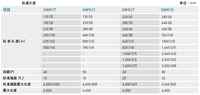 單支導(dǎo)軌標(biāo)準(zhǔn)長度及最大長度